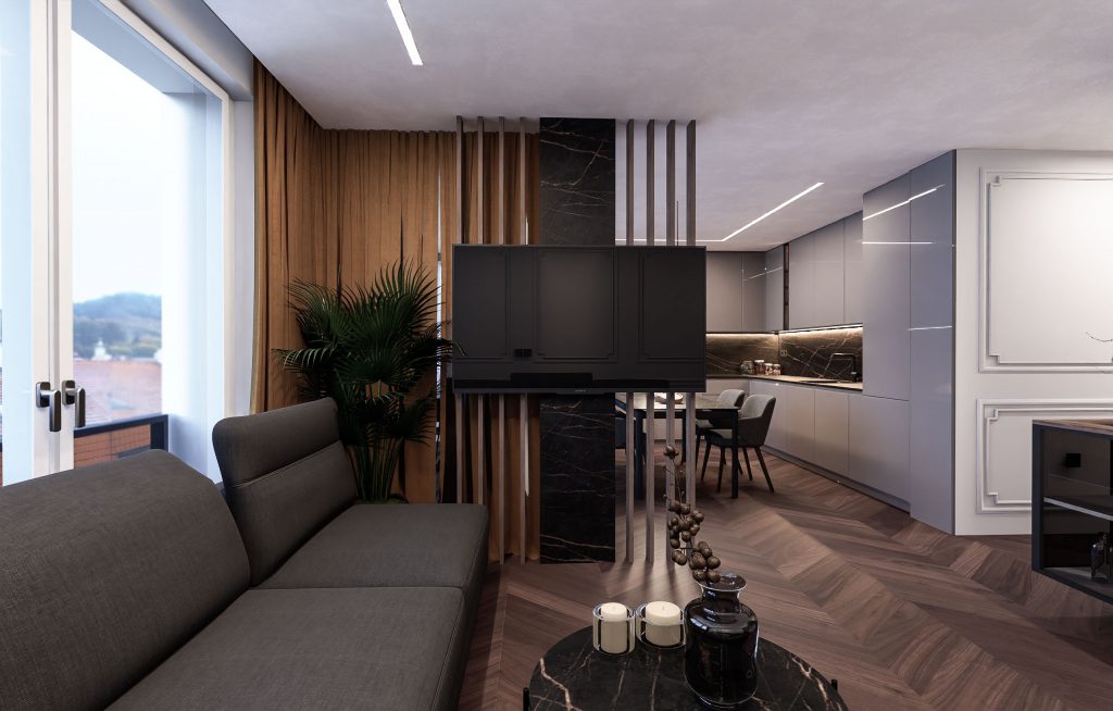 LETO : 2021 LOKACIJA : Ljubljana center OCENA PROJEKTA : od 1600€ OPREMA NA KLJUČ : od 22.000€ INTERIOR DESIGN