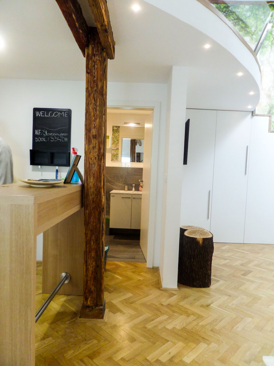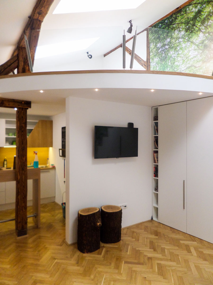 Notranje oblikovanje duplex stanovanja v Ljubljani. Želja stranke so barve v zemeljskih tonih kombinirano s črno. Tla so v hrast vinilu, stenske obloge v rahlo žametnem iveralu, z druge strani so stene barvane, kombinirane z dekorativno tapeto, svetila črna, jedilnica povezana s kuhinjskim otokom.