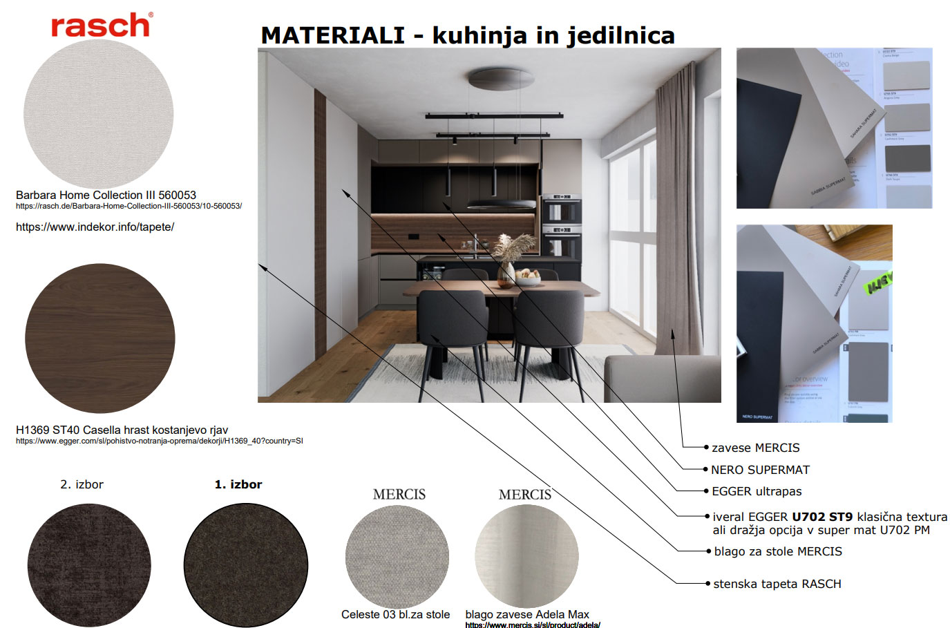 V interier dizajn sodi tudi izdelava moodboarda, ki vključujejo izdelavo prilagojenih rešitev za vaš dom. Prikazan je izsek izdelave moodboarda z Egger materiali, ki so sinonim za kakovost in estetsko dovršenost pri pohištvu po meri.