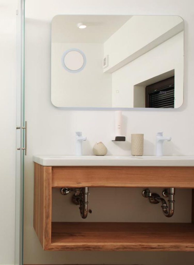 Predsoba vsebuje z leve strani Panelno dekorativno steno z led indirektno svetlobo, kljuke za obešalnike ter dekorativno tapeto wall&deco. Z desne strani je na steno pritrjeno ogledalo.