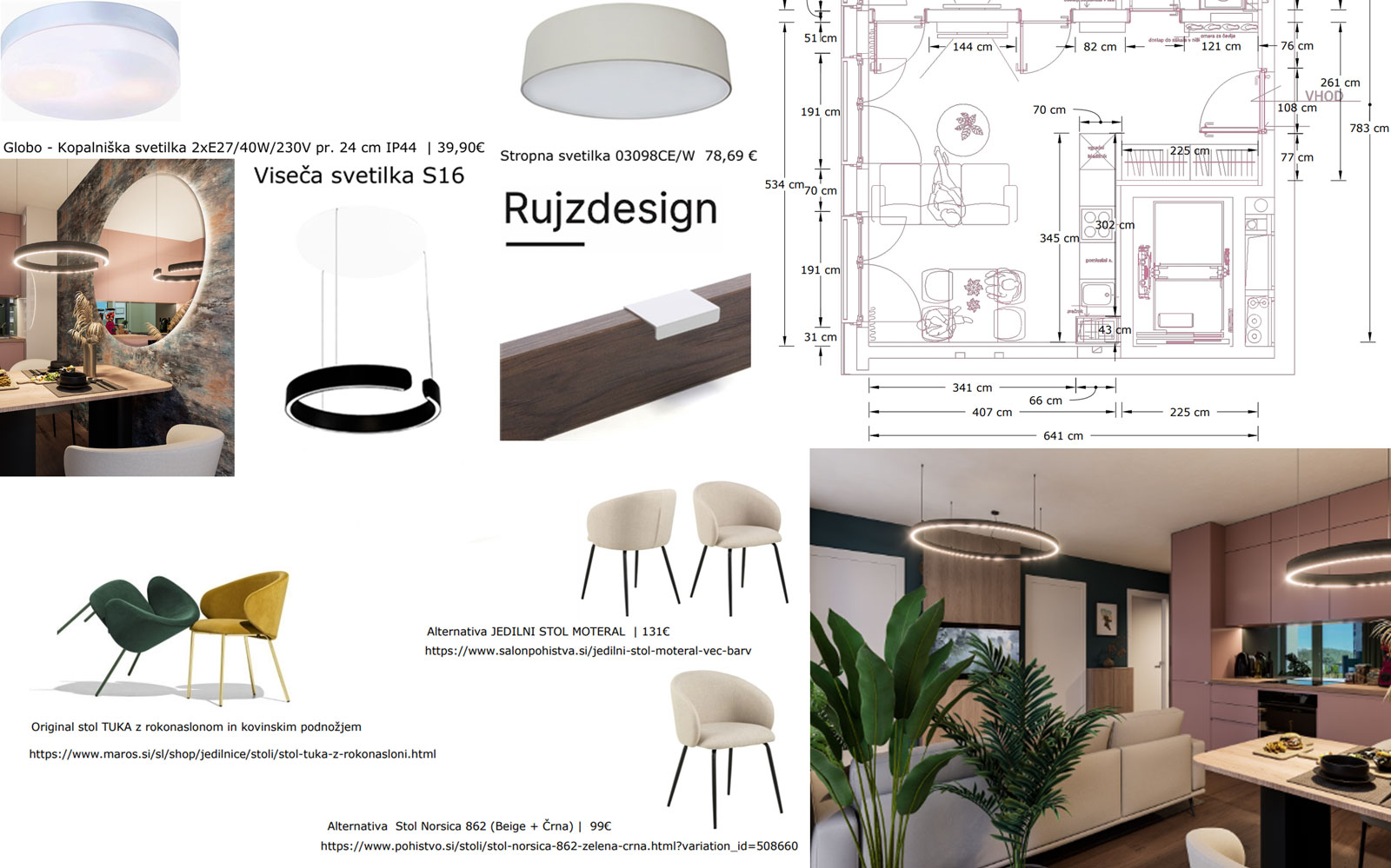 okvirno od 30.000€ (pohištvo, oprema, svetila)