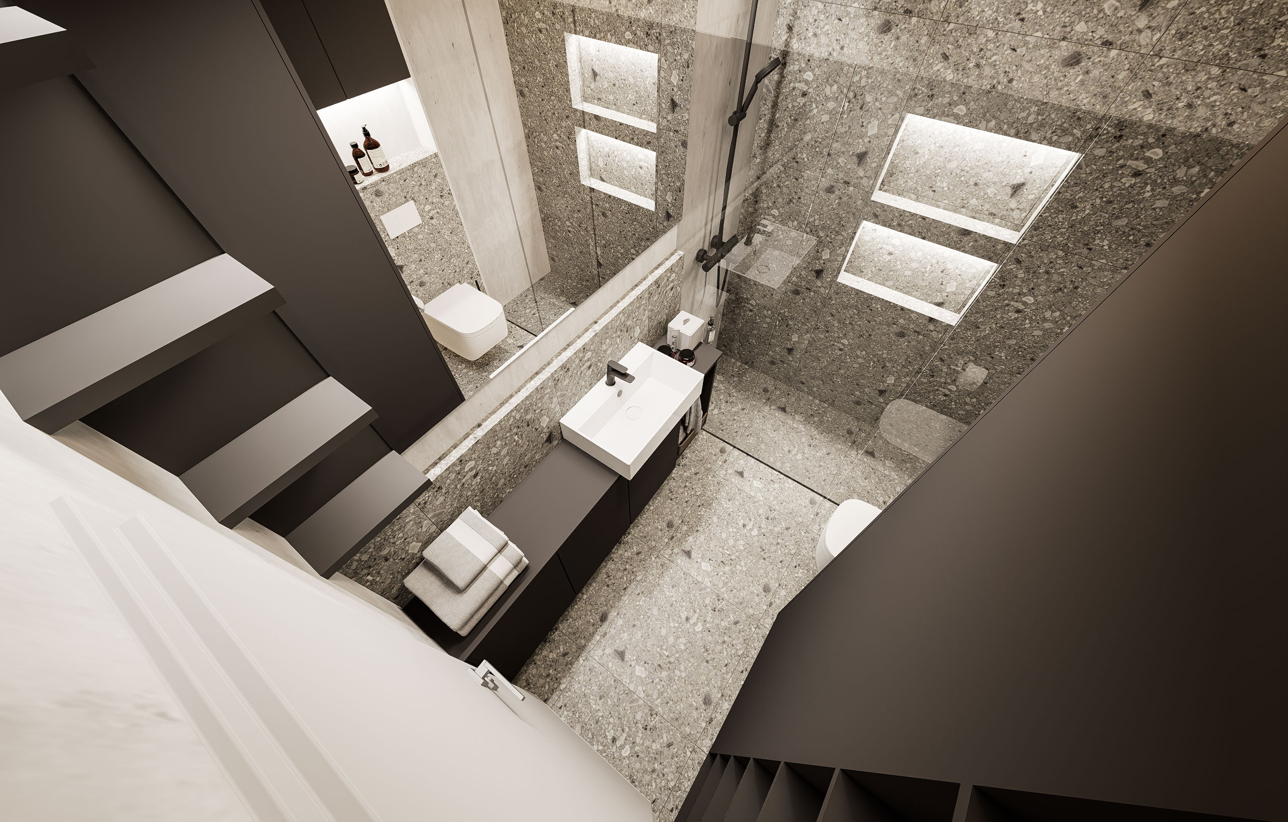 Kopalnica mora biti prostor, kjer se funkcionalnost sreča z estetiko. Pri prenovi kopalnice v Izoli smo uporabili Teraco keramične ploščice v sivo-naravnih tonih, ki ustvarjajo svež in čist videz. Dodajanje sodobnih sanitarnih elementov in kakovostnih armatur bo dvignilo prostor na višjo raven, medtem ko ustrezno osvetljeni ogledali dodajo občutek prostornosti.
